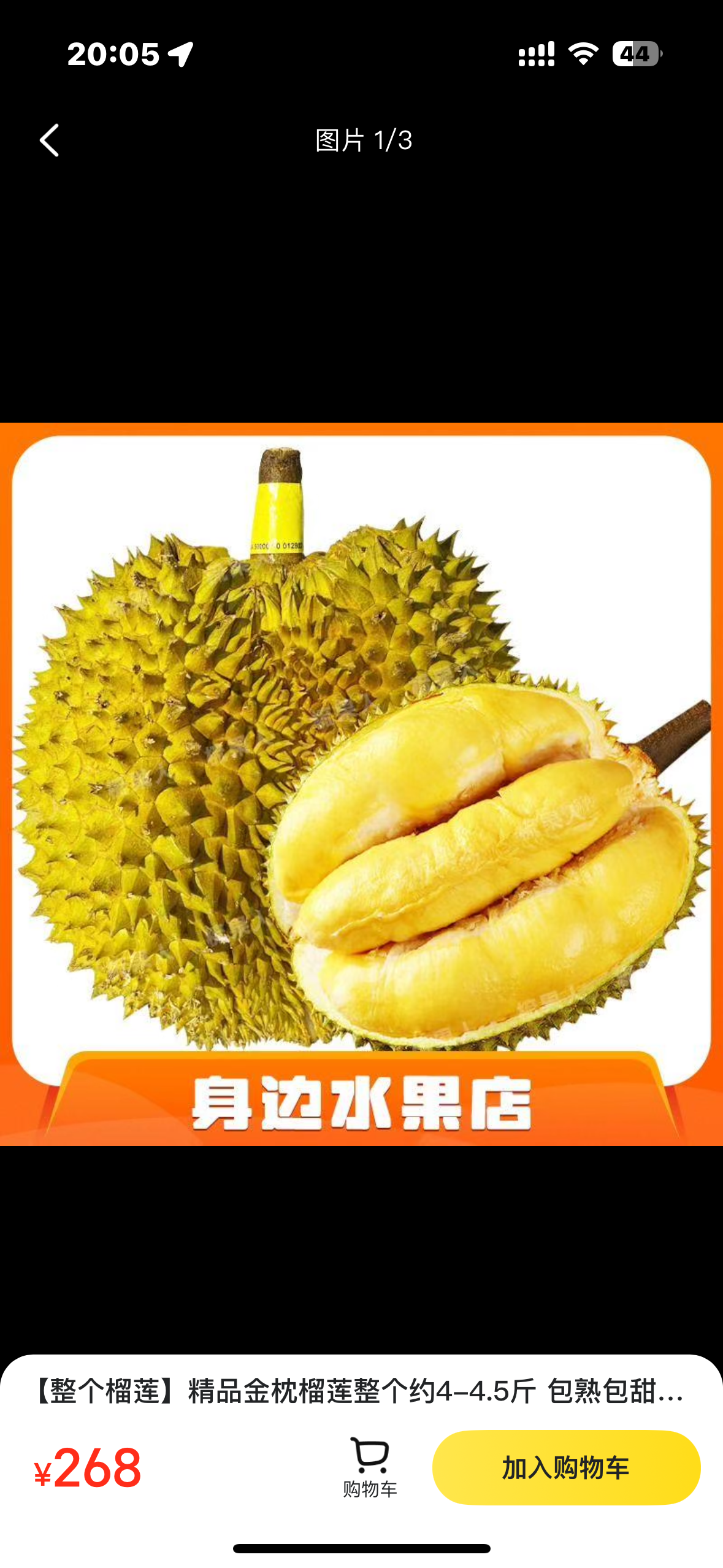 【整个榴莲】精品金枕榴莲整个约4-4.5斤 包熟包甜 新鲜榴莲水果